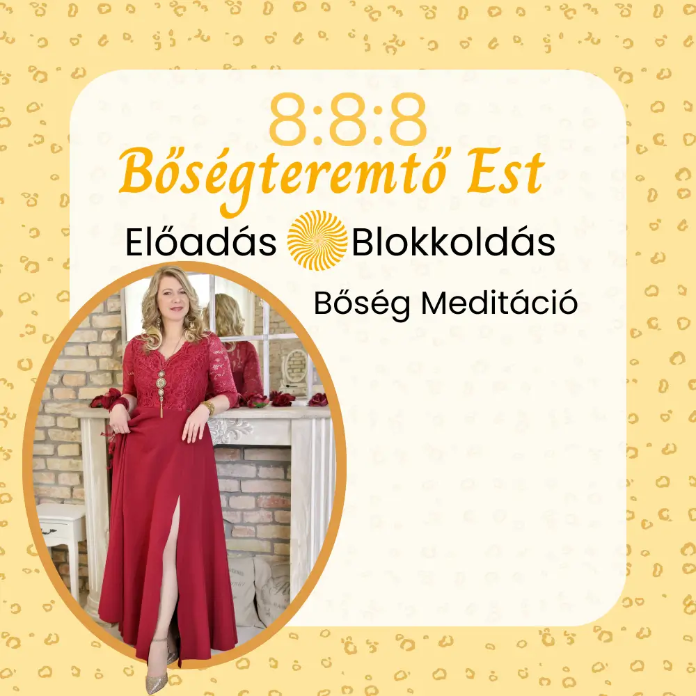 TE is meg akarod valósítani önMAGad? Fedezd fel a kifogyhatatlan erőforrásaid, törd át az önszabotázs plafont és mártózz meg az aranyszínű 8:8:8 felerősítő bőség energiájában! Pénztanításoktól, a pénz áramlásán és a bőség elfogadásán lévő érzelmi blokkok oldásán. Tarts velünk Te is!