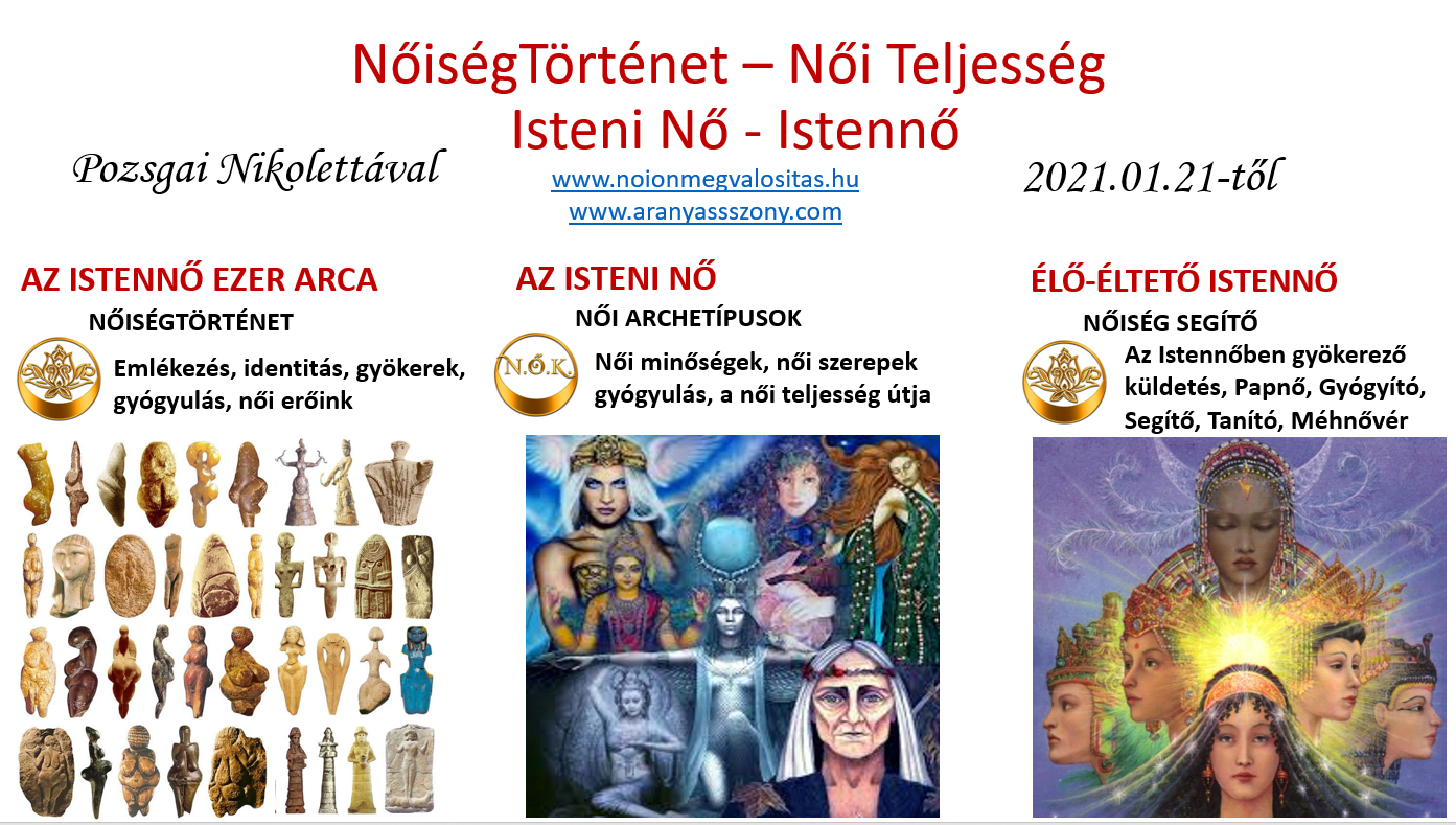 A Bennünk Élő Istennő: programsorozat: előadás, meditáció - kapcsolódás és blokkoldás az istennői/női archetípusok mentén haladva 9 archetípus - 9 női minőség - 9 női szerep - 9 hét. /részletes tematika jelentkezés és befizetés után.