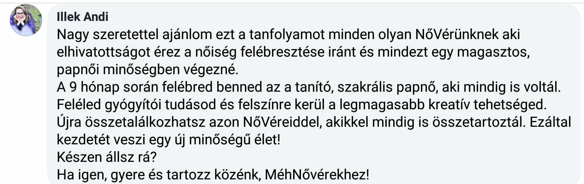 Fontos, hogy e képzés haladó szintű képzés, amely erőbe állít, küldetésedben erősít meg. Első élmények megszerzése, női körös tapasztalások és szertartásokban való megélésekhez a NőiségbeAvató hétvégéket ajánlom, hozzá a Vörös Sátor titkai című online tanfolyamot.