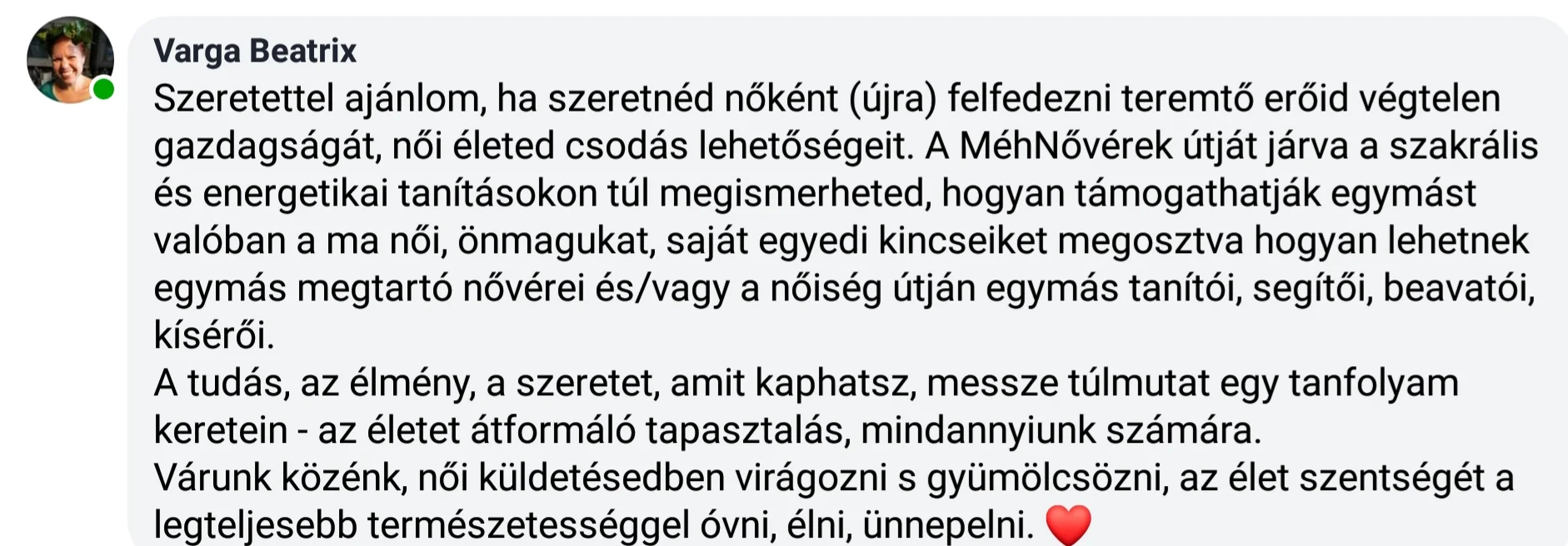 - készen állsz arra a belső utazásra, ami felkészít a méhnővéri feladatokra, nőtársaid kísérésére